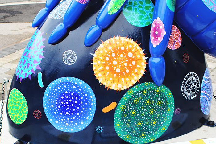 Sneezebee is definately one of my favourites so far! Not having any background in biology, and given the name and location of this sculpture, I originally assumed that the decoration was of microscopic viruses, such as the common cold, but on reading the plaque, I was informed that it is a collection of magnified pollen grains. Seems more suitable for a bee really!